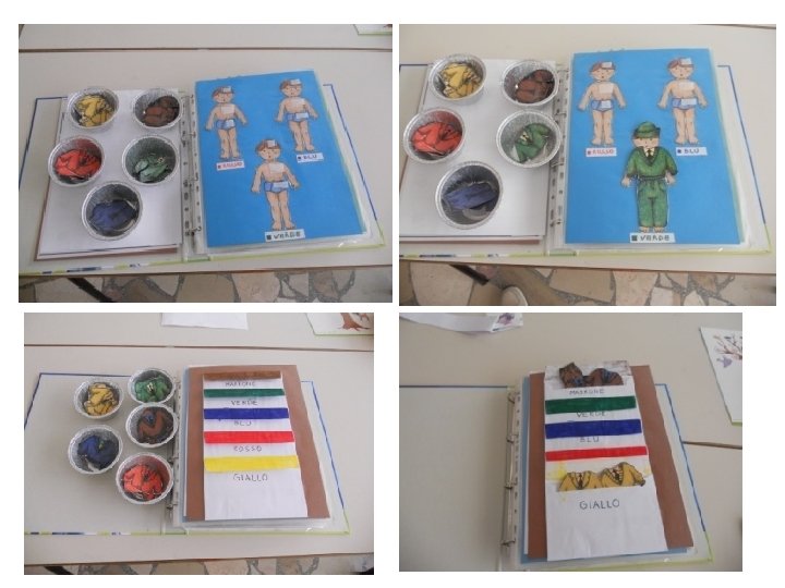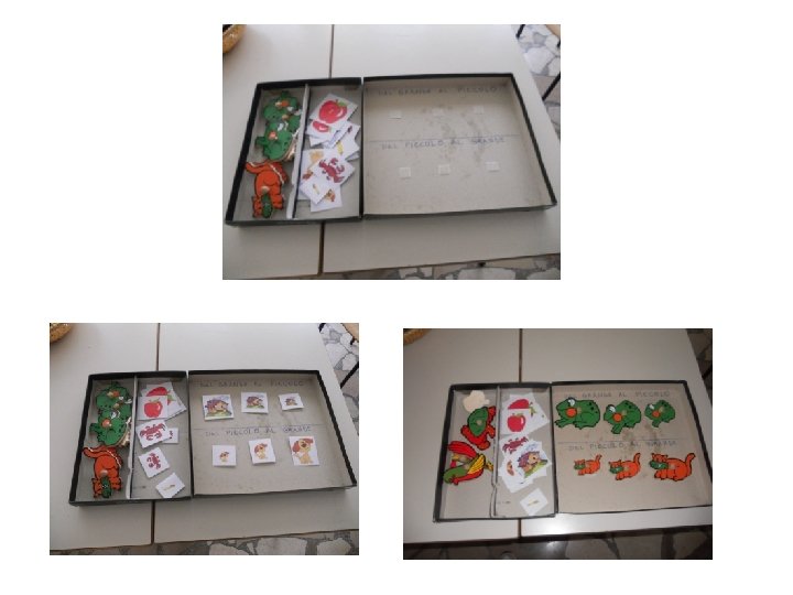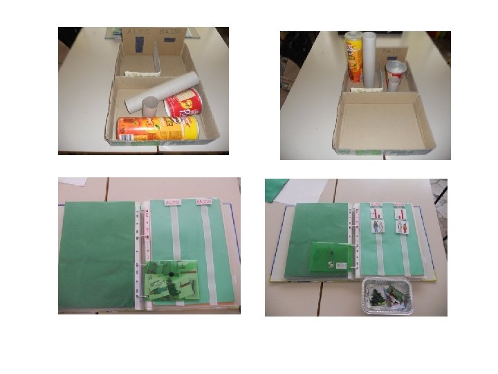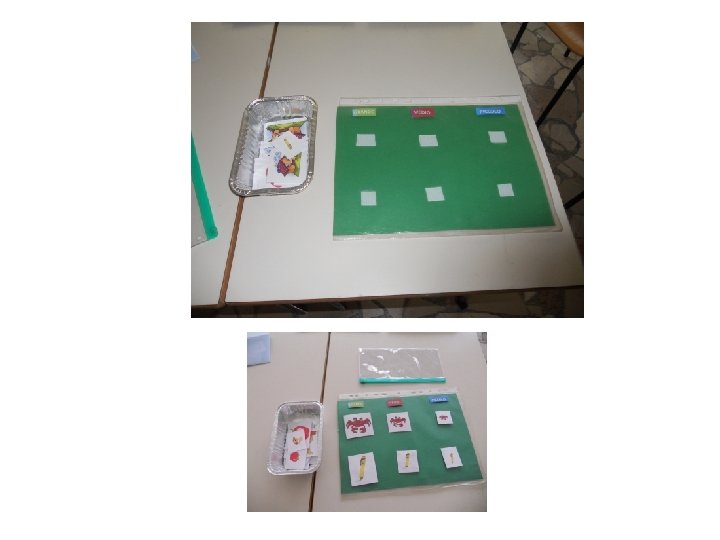 Strutturazione del materiale di lavoro Strutturare il materiale di lavoro significa rispondere in modo chiaro e concreto alla domanda "Che cosa? " Ogni scatola di lavoro contiene le diverse componenti, che saranno a loro volta contrassegnate da un simbolo: ad esempio un colore o una forma, in modo che il bambino le possa disporre nell’ordine esatto ed eseguire il lavoro da solo. Le indicazioni visive, rendono il compito "self explaining", cioè comprensibile senza bisogno di spiegazioni: incastri , puzzle o lavori di montaggio sono esempi semplici di questo genere, ma con un po’ di fantasia qualunque compito può essere presentato in modo che si spieghi da sè. Se per il bambino è ancora troppo difficile organizzarsi il lavoro attraverso l’accoppiamento di simboli, ogni scatola sarà suddivisa in scomparti contenenti le parti del lavoro da fare in modo che il compito sia comprensibile senza troppe spiegazioni verbali, che lo metterebbero in difficoltà. Quando il compito è terminato verrà riposto nella relativa scatola in modo che in ogni momento sia chiaro quanto lavoro è stato eseguito e quanto ne resta da eseguire.