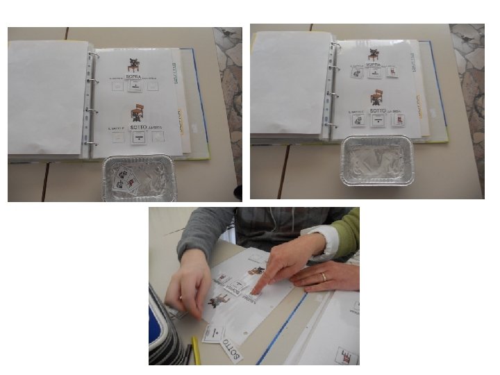 Strutturazione delle attività didattiche Anche le attività individualizzate sono state strutturate, costruendo e utilizzando le cosiddette “scatole di lavoro”: ciascuna scatola di lavoro contiene l’attività da svolgere, le indicazioni sono visive, il compito è comprensibile senza bisogno di spiegazioni verbali, i materiali sono stabili e sono disposti e organizzati in modo tale che sia chiaro quando “il compito è finito". La scelta dello stimolo visivo è passato dall'oggetto concreto alla foto, al disegno, alla parola scritta. Le attività a tavolino (nella classe) sono state a crescente livello di difficoltà con l’utilizzo di mediatori didattici quali, schede strutturate ricche di stimoli visivi, per facilitare la comprensione, sostenere l’attenzione e la memoria. Per l’acquisizione di una maggiore autonomia personale, le attività sono state strutturate attraverso checklist delle diverse fasi del compito associate ad immagini per favorire la concreta acquisizione di abilità (es. le azioni da compiere nell’uso del bagno).