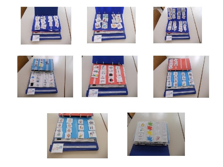Strutturazione del tempo Per la strutturazione del tempo, sono state organizzate l'alternarsi delle attività e dei momenti di pausa della quotidiana vita scolastica, con attività e tempi prevedibili e comprensibili. La comprensione del tempo, del succedersi delle attività è stata favorita dalla CAA, che utilizza lo stimolo visivo (immagineoggetto) per rafforzare o sostituire lo strumento organizzatore della parola. Le guide visive, le strisce del tempo e gli schemi giornalieri, sono stati uno strumento compensativo alla sua difficoltà di strutturare un'immagine mentale delle sequenze di attività nel tempo. Per questo si è ritenuto indispensabile strutturare la giornata attraverso una organizzazione del tempo, che informasse l’alunno su ciò che stava accadendo, ciò che era accaduto e ciò che doveva accadere. In pratica è stata predisposta una sua "agenda giornaliera”, costituita da una sequenza di immagini, ordinate dall’alto verso il basso. A conclusione di ogni singola attività, l’alunno ha staccato l’immagine corrispondente e l’ha sistemata nel contenitore di carta con su scritto “finito”.