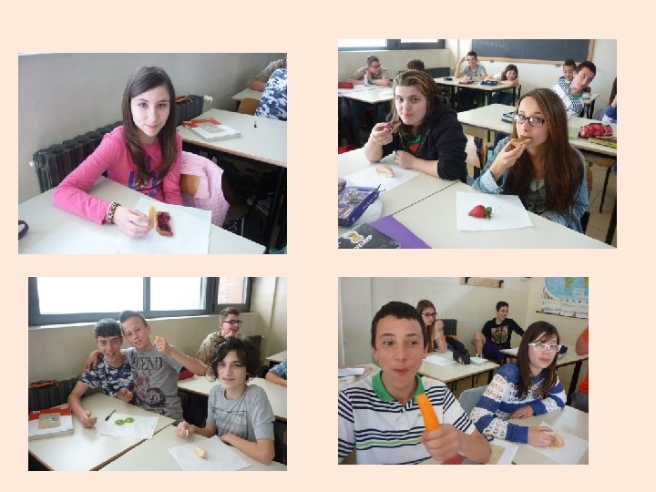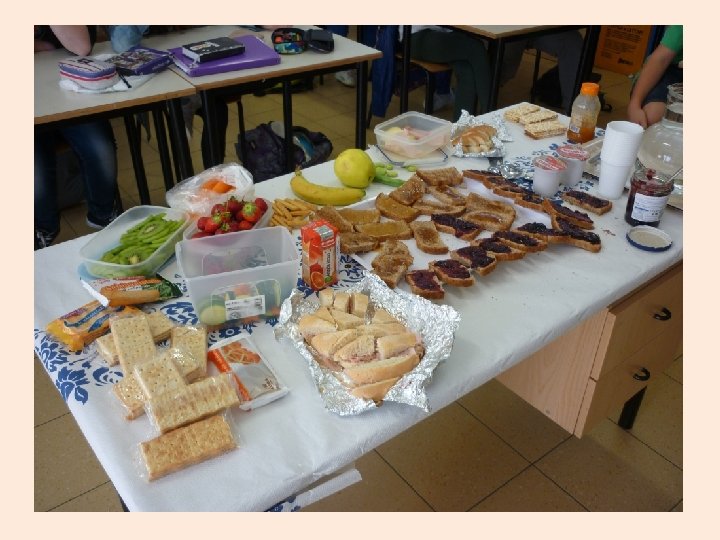 Survey about breaktime at school During the school year, our class, together with the technology teacher, have carried out a teaching unit on nutrition education which allowed us to understand how we should divide the calories in the meals of the day. However it’s difficult to put into practice what we learned and at school in the breaktime there a lot of temptations and we students are out of our parents’ control. We did a survey among the students of our school in order to determine what students have in the breaktime. Our survey showed that on 220 pupils 63% of pupils bring a snack from home 37% of pupils buy it at the baker’s or from vending machines at school 12% of pupils doesn’t have a snack Regarding food preferences: 27% choose sandwiches, or pizza or flatbread, crackers 47% sweet snacks , fresh or prepacked snacks 17% crisps and salty snacks 9% fruit, vegetables, yoghurt
