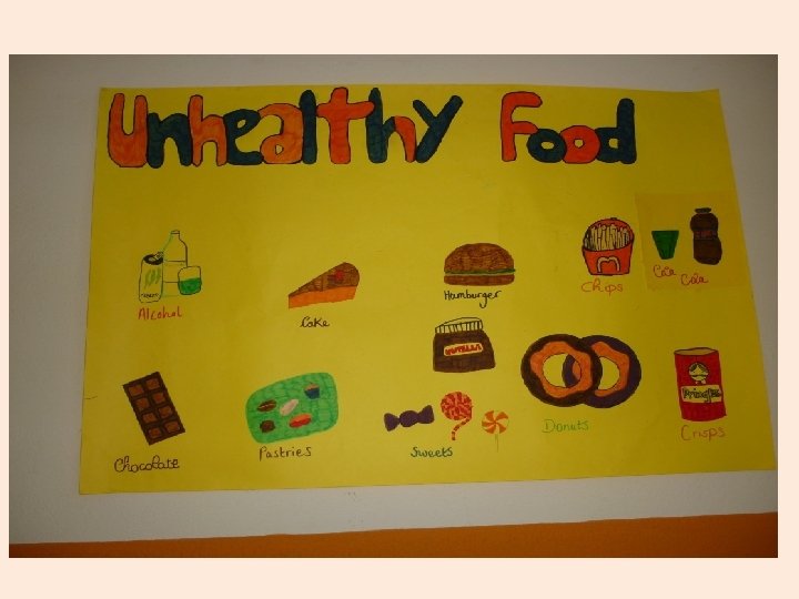 During the week of healthy food…. Students developed the idea to create a poster, working closely with the technology teacher. The poster was concerned with detailing healthy food as well as highlighting food that we should avoid. The students attempted to involve their familes in encouraging them to eat healthy food. At the end of the week they compared their experiences.