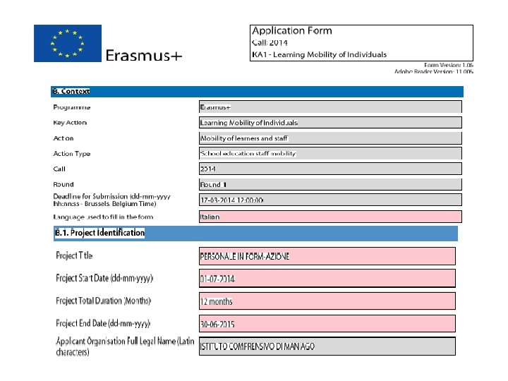 Progetto KA 1 Personale in form-azione AREE DI MIGLIORAMENTO PREVISTE Inglese di base e Inglese intermedio per qualificare l’insegnamento della lingua inglese rafforzare i contatti internazionali e prepararsi a future collaborazioni Metodologia CLIL per aggiungere qualità alle sperimentazioni già avviate anche nella scuola primaria Uso di ICT nell’insegnamento e nella pratica quotidiana per sviluppare le competenze digitali di studenti e insegnanti Comunicazione professionale per le relazioni e la gestione delle risorse umane Internazionalizzazione e Project Cycle Management per formulare un buon Piano di Sviluppo Europeo dell’Istituto