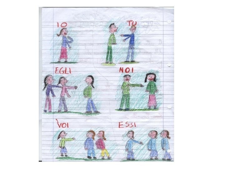 LA RIFLESSIONE SULLA LINGUA RICORRERE ALL’IMMAGINARIO E’ FONDAMENTALE PER TUTTI I BAMBINI, IN MODO PARTICOLARE PER L’ALUNNO D. S. A. Si scoprono i pronomi personali. - DRAMMATIZZAZIONE E SUCCESSIVA RIPRODUZIONE GRAFICA