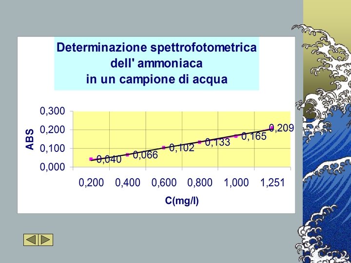 q Determinazione delle sostanze organiche q Analisi qualitativa dell’ammoniaca q Analisi qualitativa dei nitriti q Determinazione dell’ammoniaca mediante metodo spettrofotometrico q Determinazione spettrofotometrico dei nitriti mediante q Analisi chimico-fisiche su vari campioni di acque metodo
