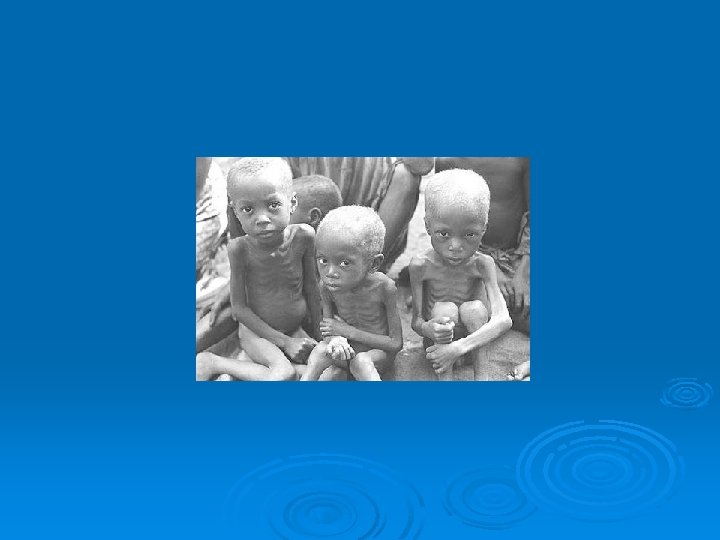 Un'alimentazione insufficiente porta a dimagrimento, apatia, debolezza muscolare, depressione del sistema nervoso, minor resistenza alle malattie, invecchiamento precoce, morte per inedia. Queste conseguenze si manifestano soprattutto nei bambini, la cui mortalità nel Terzo mondo è altissima: ventre gonfio, magrezza, avvizzimento della pelle, apatia, ecc. Le malattie parassitarie e infettive colpiscono soprattutto i bambini non solo a causa della denutrizione, ma anche per le precarie condizioni igieniche (acqua inquinata, mancanza di fogne, ecc. ).