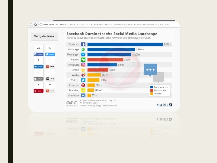 Društvene mreže ■ 2003 - Myspace ■ 28. decembar 2002. - Linked. In ■ 2004 - Facebook – Mark Zuckerberg ■ 2006 - Twitter ■ 2010 - Instagram ■ 2010 - Viber ■ 2011 - Snapchat