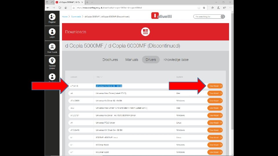 Cliccare su «Sfoglia…» Sfoglia e indirizzare l’installazione da disco sulla sottocartella 64 bit della sottocartella KXDriver della cartella Kx 74_UPD_Olivetti contenente il driver della stampante precedentemente estratta dal file archivio (es: C: Users[NOME UTENTE]DownloadsKx 74_UPD_OlivettiKXDriver64 bit; UTENTE]DownloadsKx 74_UPD_OlivettiKXDriver64 bit cart. estr. C: UsersAdministratorDownloadsKx 74_UPD_Olivetti) UsersAdministratorDownloadsKx 74_UPD_Olivetti