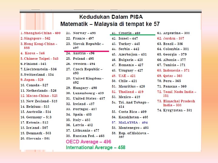 PENCAPAIAN MALAYSIA DALAM PISA PADA TAHUN 2009