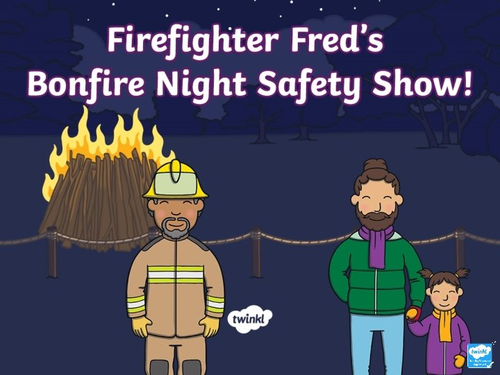 It was Bonfire Night and Lucy was very excited – she was at her very first B onfire Night celebration! Lucy’s dad was a little worried though, Lucy was only four and he wanted to make sure that she was safe near the big bonfire. Suddenly, Dad spotted a poster with exciting firework pictures on it. He read it out loud so that Lucy knew what it said, “ Firefighter Fred’s Bonfire Night Safety Show!”