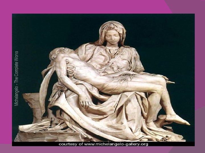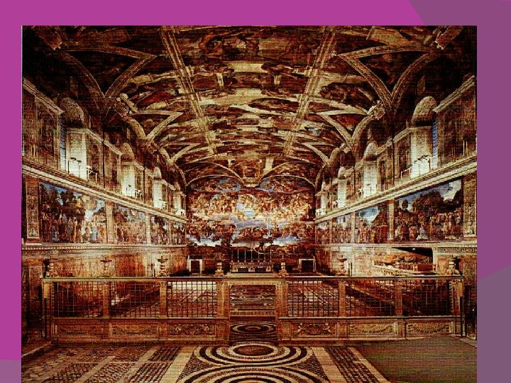 Michelangelo, a many sided genius, sculpture, engineer, painter, architect, and poet. � Shaped marble in to masterpieces. � Painting masterpiece was the huge mural to decorate the ceiling of the Sistine Chapel in Rome. � A talented architect, designed the dome of St. Peter’s Cathedral in Rome. �