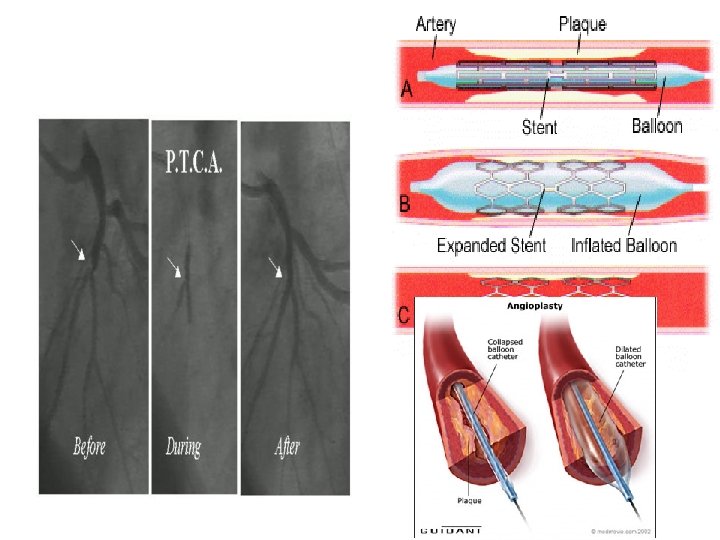 PTCA percutaneous transluminal coronary angioplasty • Patient has had a history of CAD for several years. • Underwent PTCA with stent placement x 1 year ago • Increasing angina • PTCA last week shows near occlusion of four coronary arteries
