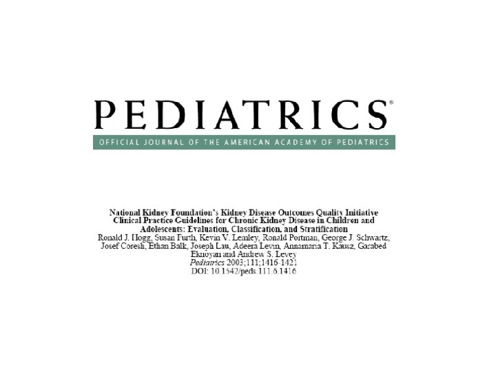1. Glassock RJ, Winearls C. The Global Burden of Chronic Kidney Disease: How Valid Are the Estimates? Nephron Clin Pract 2008; 110: c 39 -c 47. 2. Glassock RJ, Winearls C: An epidemic of chronic kidney disease: fact or fiction? Nephrol Dial Transplant 2008; 23: 1117– 1121. 3. Glassock and Winearls. Screening for CKD with e. GFR: Doubts and Dangers Clin J Am Soc Nephrol. 2008; 3: 1563 -1568. 4. Bauer C, Melamed ML, Hostetter TH: Staging of chronic kidney disease: time for a course correction. J Am Soc Nephrol 2008; 19: 844– 846. 5. Poggio ED, Rule AD: Can we do better than a single estimated GFR threshold when screening for chronic kidney disease? Kidney Int 2007; 72: 534– 536. 6. Vassalotti JA, Stevens LA and Levey AS. Special announcement: Testing for Chronic Kidney Disease: a position statement from the National Kidney Foundation. Am J Kidney Dis 2007; 50: 169– 180 7. Coresh J, Eknoyan G, Levey AS. Estimating the prevalence of low glomerular filtration rate requires attention to the creatinine assay calibration. J Am Soc Nephrol 2002; 13: 2811– 2812