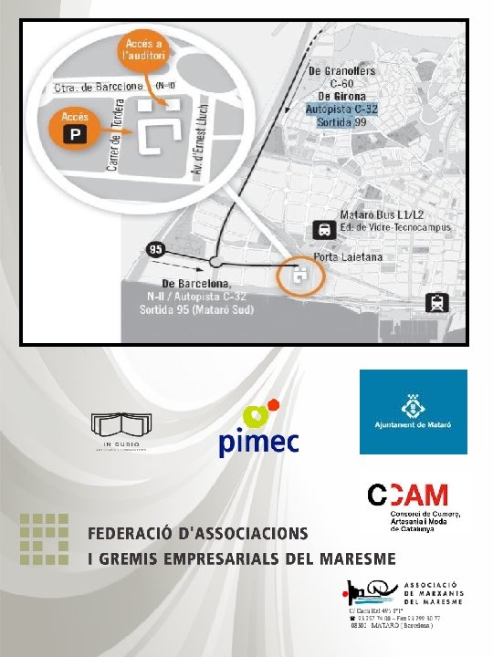 “Posem valor als mercats setmanals” IV Jornada dels Marxants 9, 45 h. Recepció dels assistents. Sala Burriach del Tecnocampus. 10 h. Benvinguda a la IV Jornada dels Marxants, per els senyors: • Sr. Martí Ramoneda. President de l’Associació de Marxants del Maresme. • Sr. Miquel Rey. Regidor delegat de Promoció Econòmica i Innovació de l’Ajuntament de Mataró. 10, 15 h. “La taxa municipal dels mercats setmanals, una taxa a revisar”. A càrrec de : • Sr. Martí Ramoneda. President de l’Associació de Marxants del Maresme • Sr. Carles Sayol. Estudiant en practiques a la FAGEM, cursant ADE i Gestió per a la Innovació al Tecnocampus. • 11, 15 h. Recés i cafè. 11, 30 h. “Mercats setmanals vers mercats municipals”. A càrrec de: • Sr. Alejandro Goñi. President de PIMEC – Comerç. Membre del comitè executiu de PIMEC. President del Mercat de la Concepció. Vicepresident del Consell de Ciutat de Barcelona. 12, 30 h. Cloenda de la IV Jornada dels Marxants per : • Sr. Josep Mª Recasens. Director General de Comerç.
