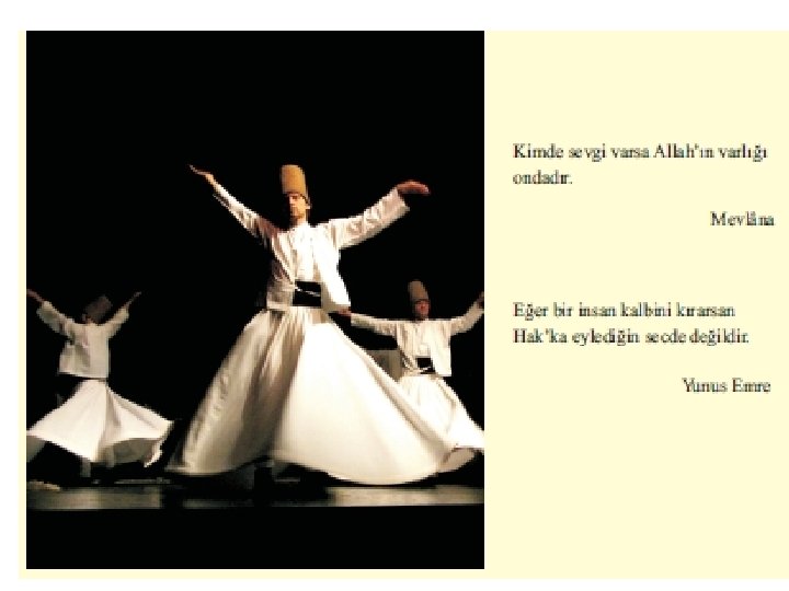 Hoca Ahmet Yesevi (12. yy. ): Ahmet Yesevi; her şeyin ilahî aşkın tecellisi olduğunu, bu nedenle de her şeyi gönülden sevmek gerektiğini söyler. Ancak bu şekilde Tanrı'ya ulaşılabileceğini belirtir. O'na göre aşksız, Tanrı'yı anlamak mümkün değildir. Çünkü aşksız kişi gerçek insan değildir. Irk, dil, din, renk, mezhep ayrımı yapmaksızın tüm insanlığa sineyi açmak, onlara hoşgörülü olmak gerekir. Çünkü insan kâinatın özüdür.
