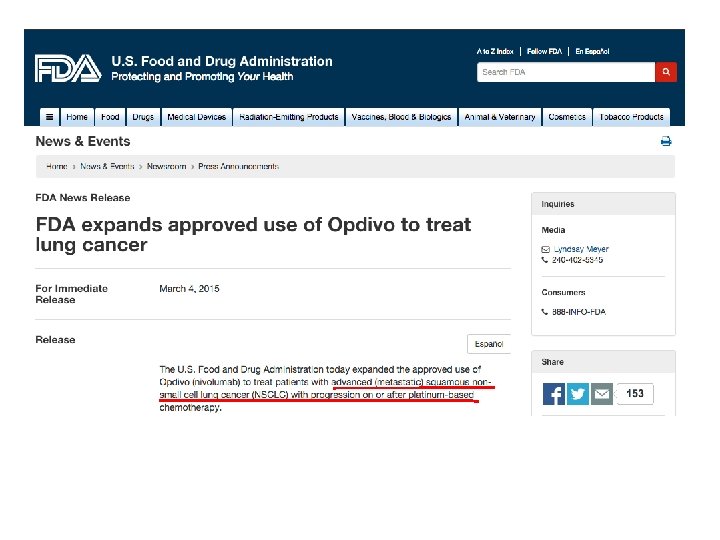 PD-L 1 expression and response to anti-PD-1/anti-PD-L 1 agents in NSCLC Nivolumab 1, 2 (anti-PD-1) Pembrolizumab 3, 4 (anti-PD-1) MEDI-47365 (anti-PD-L 1) MPDL 3280 A 6, 7 (anti-PD-L 1) Pre-treated (All doses) Pre-treated 1 (All doses) 1 st-line 2 (3 mg/kg dose) Pre-treated 3 (10 mg/kg dose) 1 st-line 4 (All doses) Overall 22/129 (17) 6/20 (30) NR/194 (20) NR 9/58 (16) 12/53 (23) PD-L 1+ 5/33 (15) 5/10 (50) NR/159 (23) 11/42 (26) 5/20 (25) IHC 3: 5/6 (83) IHC 2: 1/7 (14) IHC 1: 2/13 (15) PD-L 1 5/35 (14) 0/7 NR/35 (9) NR 1/29 (3) IHC 0: 4/20 (20) Overall 2. 3 mos 36. 1 wks NR NR PD-L 1+ 3. 6 mos 45. 6 wks 11 wks NR NR NR PD-L 1 1. 8 mos 36. 1 wks 10 wks NR NR NR Overall 9. 9 mos Not reached NR NR PD-L 1+ 7. 8 mos Not reached NR NR PD-L 1 10. 5 mos Not reached NR NR ORR, n/N (%) Median PFS Median OS NR = not reported. 1. Brahmer J, et al. Poster presented at ASCO 2014 (Abstract 8112); 2. Gettinger S, et al. Poster presented at ASCO 2014 (Abstract 8024); 3. Garon E, et al. Poster presented at ASCO 2014 (Abstract 8020); 4. Rizvi N, et al. Oral presentation at ASCO 2014 (Abstract 8007); 5. Brahmer J, et al. Poster presented at ASCO 2014 (Abstract 8021); 6. Soria J, et al. Oral presentation at ECC 2013 (Abstract 3408); 7. Soria J‐C, et al. Poster presented at ESMO 2014 (Abstract 1322 P).