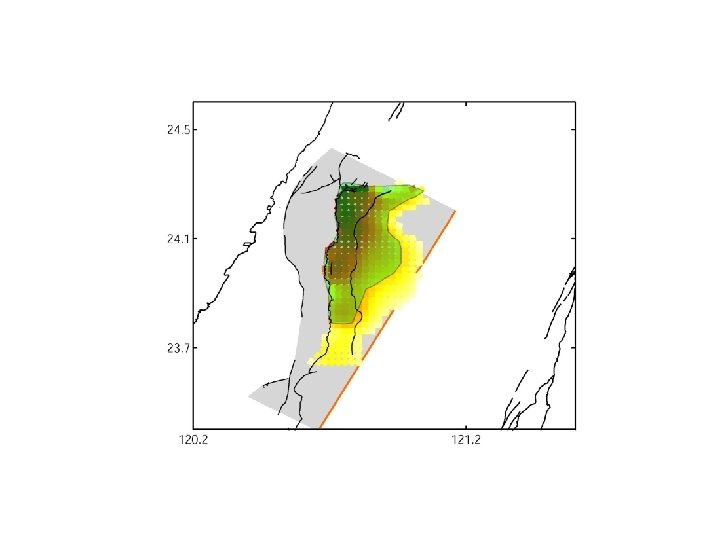 3 -D Analysis Backslip model of interseismic strain (scale in m/yr) (Only Chelungpu fault is taken into account)