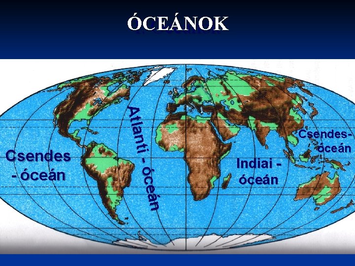 ÓCEÁNOK I. Óceánok eán ti - óc Atlan Csendes - óceán Csendesóceán Indiai óceán