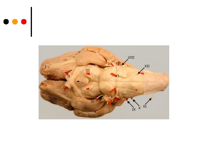 Periferni živčani sustav (systema nervosum periphericum) a) moždani živci-mozgovni ž. (nn. craniales) -izlaze iz baze mozga -prolaze kroz otvore na lubanjskim kostima -ima ih dvanaest pari -označeni rimskim brojevima (I-XII)