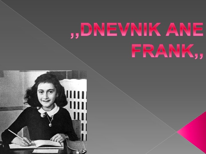 VIŠE O ANI � Ana se rodila 12. juna 1929. godine u Frankfurtu ( Nemačka). Za svoj 13. rodjendan dobila je dnevnik koji je nazvala Keti, kome se poveravala kao najboljoj prijateljici. U , , Tajnom skloništu’’ nije mogla ni sa kim da priča otvoreno, na način na koji je ona želela. Smatrala je da je hartija trpeljivija od ljudi. U , , Tajnom skloništu’’ Ana je bila zatvorena. Čeznula je za komadićem plavog neba.