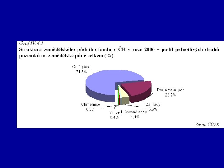 Silné a slabé stránky složky ŽP - půda • Klesá podíl zem. půdy a roste podíl lesní půdy • Klesá podíl negativních vstupů do půdy ( z atmosféry, hnojiva, pesticidy) • Koncentrace rizikových prvků podlimitní • ------------------ • Vysoké (70%) zornění zem. půdy • Ohrožení erozí • 4% neobdělávané zem. půdy • Degradace lesních půd • DDT v půdě