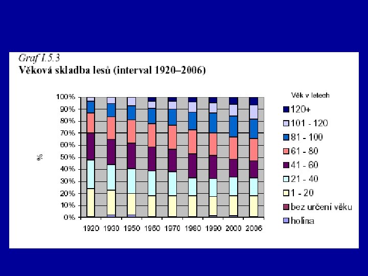 Lesy • 20. století – mírné zalesňování, až k 1/3 rozlohy ČR, a to především jehličnany • (přes polovinu lesních porostů tvoří smrk). • Zvyšuje se podíl listnatých lesů (1/4 lesních porostů. ) • - ø věk stromů. . . 63 let • - obmýtní doba. . 119 let • - těžba – především jehličnany (1/2 dřevní hmoty jsou kmeny) • Další užitky lesa – vodohospodářský, ekologický, rekreační, sběr plodů