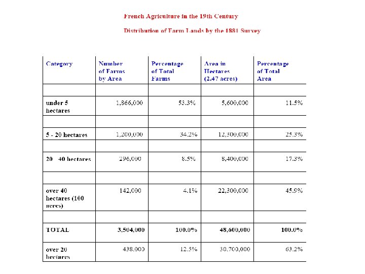 Agrarian Changes in Early Modern France: to the Revolution - 13 - ii) ‘path dependency’: - that long-established, pre-existing institutional, legal, social, cultural, political, as well as economic factors will determine paths of economic progress, despite contrary attempts of economic agents, who were prevented from allocating resources according to principles of free markets (etc. ) - iii) results in 1910 (in tables and graph): - - (1) British farms had twice as much land per worker: - (2) English labour productivity grew 4. 7 fold (from 1500), while French grew only 2. 4 times