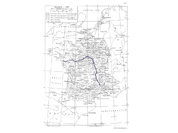 Structure of Early-Modern French Agriculture: North (1) • (1) Fundamentals of northern French agriculture: north of the Loire • a) Northern Wet Farming: with two or threefield crop rotations • b) communal farming: Open or Common Fields • c) Determining Factors: • (i) Feudalism, Manorialism, Serfdom: heartland north of the Loire • - as in England communal agriculture (Open Fields)