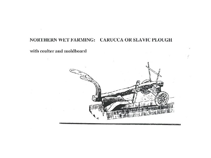 Structure of Early-Modern French Agriculture: (2) • c) Determining Factors: • (ii) climate and topography: heavy wet alluvial clay soils • - with moderate to heavy rainfalls over the entire year • (iii) requiring a far heavier plough (Slavic carucca) • (iv) more & stronger draft (draught) animals: • - oxen (8 per plough) and horses (2 per plough) d) Exceptions: Normandy and parts of Brittany - - Viking settlements and Celtic continuities: never fully feudalized