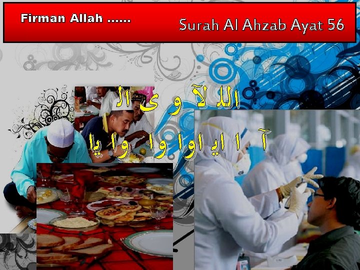 Maksudnya : “Sesungguhnya Allah Taala Dan Para Malaikat Sentiasa Berselawat Ke Atas Nabi (Muhammad), Wahai Orang-orang Beriman! Berselawatlah Kamu Ke Atasnya Serta Ucapkanlah Salam Sejahtera Dengan Penghormatan Ke Atasnya Dengan Sepenuhnya”.