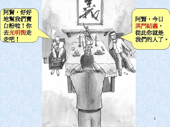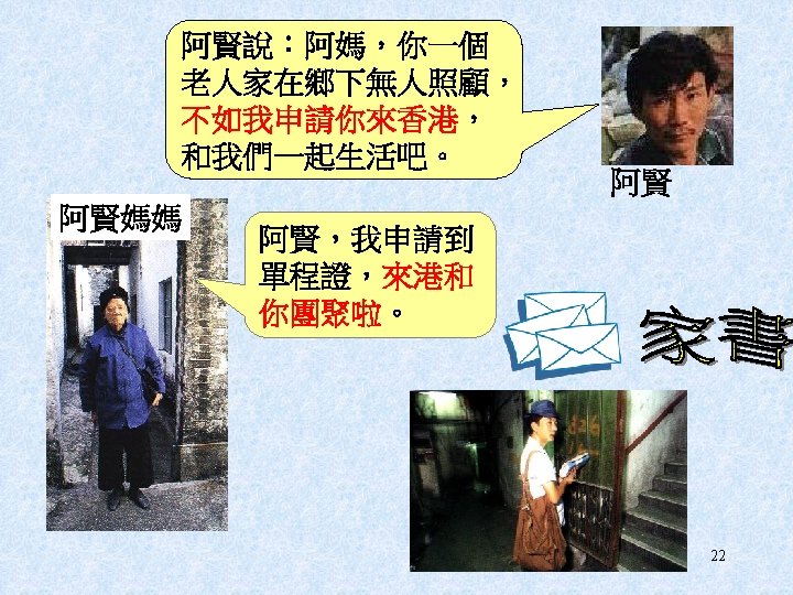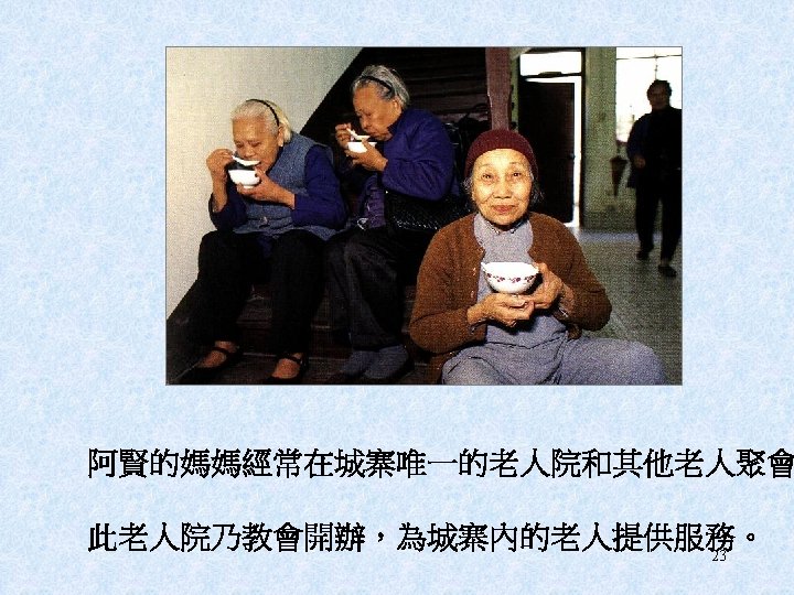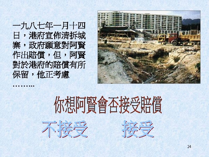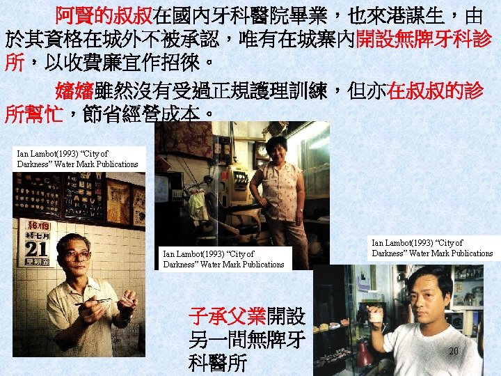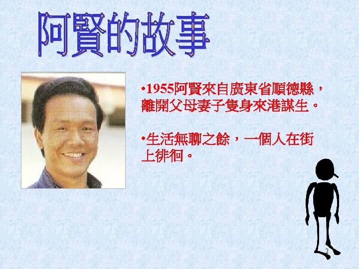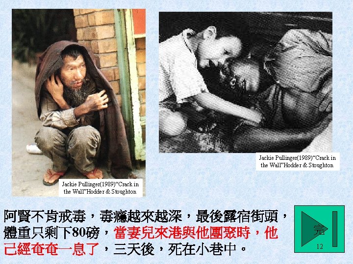 Jackie Pullinger1989Crack in the WallHodder Stoughton 10 Jackie Slides: 28 Download presentation 阿賢在販毒之餘, 自己亦染上毒癮。 Jackie Pullinger(1989)“Crack in the Wall”Hodder & Stoughton 10 Jackie Pullinger(1989)“Crack in the Wall”Hodder & Stoughton 阿賢,你肯信 主嗎?你接受 福音戒毒吧! 11 Ian Lambot(1993) “City of Darkness” Water Mark Publications 阿賢之家 16 阿賢用積蓄買了一間房子,並申請妻兒來港,共享天倫。 Ian Lambot(1993) “City of Darkness” Water Mark Publications Jackie Pullinger(1989)“Crack in the Wall”Hodder & Stoughton 斗室雖小,但總算在香港有棲身之地。 17 27 1 2 3 4 去 城寨生活 的抉擇 組織圖 5 13 6 14 7 肯 12 21 22 23 15 8 16 9 17 10 18 11 20 不去 不肯 19 24 不接受 接受 26 25 27完 28