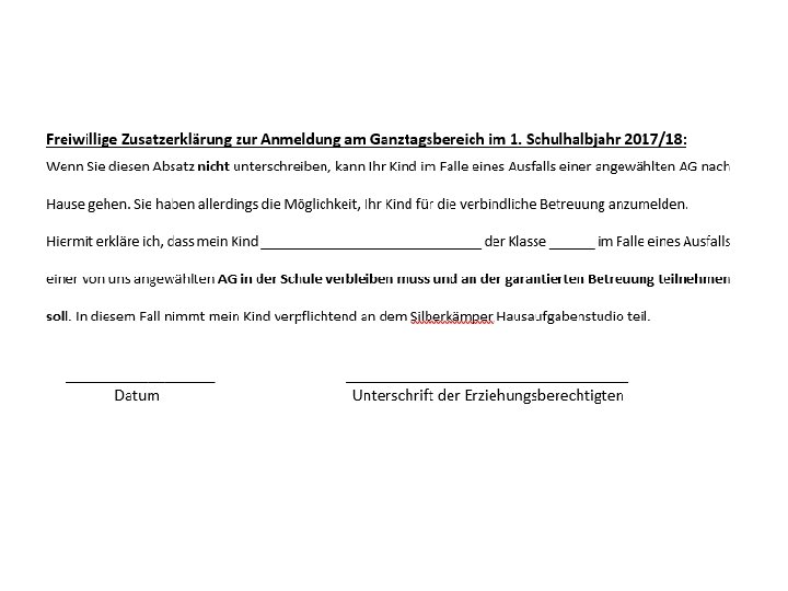 Ganztagsangebote am Ga. S 2017/2018 ÞAbgabe des Wahlbogens: Freitag, 11. August 2017 (WICHTIG!) ÞAushang: Montag, 14. August 2017: Welche AGs finden statt! => Beginn der AGs: 16. August 2017