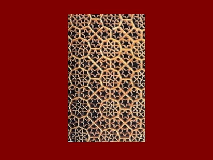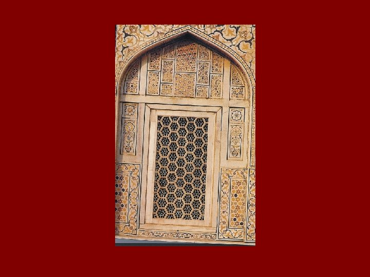 Islamic motifs • Prohibit figurative forms (architecture cannot be decorated with human or animal figures • Allows Geometric, abstract, floral and vegetation motifs • Arabesques-complex geometric patterns and scrolling vines • Calligraphy-drawn from the Koran • Rugs • Garden represents paradise-water, trees, and flowers with variety of scents and colors