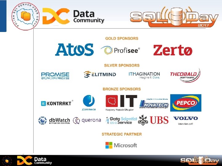 O nas – Maciej Skrzos • • • 8 lat doświadczenia, jako Programista BI, Od 2 lat Team Leader, Lider PLSSUG Trójmiasto, organizator konferencji Analytics. Conf, Software Development Manager w BEST SA, Współtwórca High Wheel Software SQLDay 2017