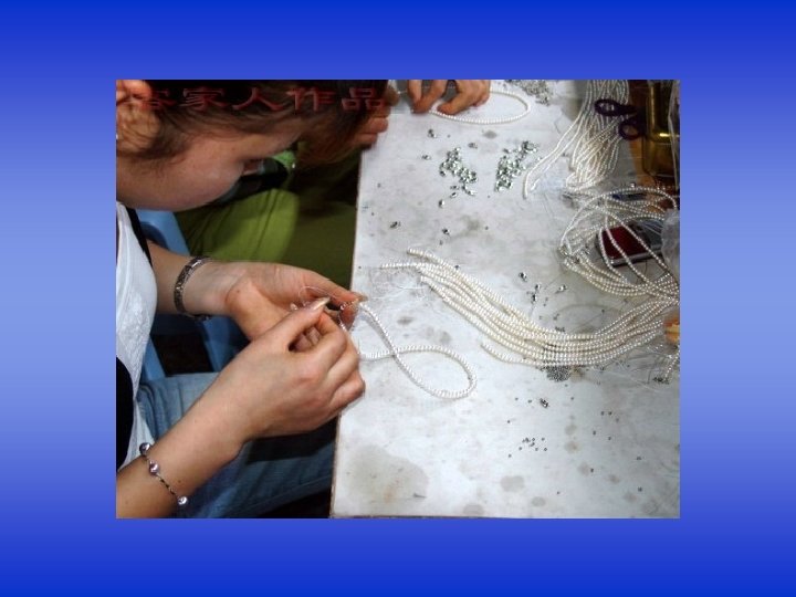 Do dutiny čínské perlorodky se vsune jen malinký, 1 mm široký a 2 mm dlouhý kousíček pláště z jiného mlže. Vložený kousek pláště začne produkovat perleť - po roce a půl obsahuje perlorodka drobnou, nepravidelnou perličku bez jádra