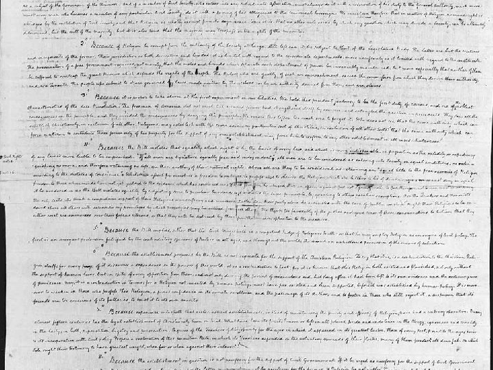 James Madison - To the Honorable the General Assembly of the Commonwealth of Virginia Memorial and Remonstrance We the subscribers, citizens of the said Commonwealth, having taken into serious consideration, a Bill printed by order of the last Session of General Assembly, entitled "A Bill establishing a provision for Teachers of the Christian Religion, " and conceiving that the same if finally armed with the sanctions of a law, will be a dangerous abuse of power, are bound as faithful members of a free State to remonstrate against it, and to declare the reasons by which we are determined. We remonstrate against the said Bill,