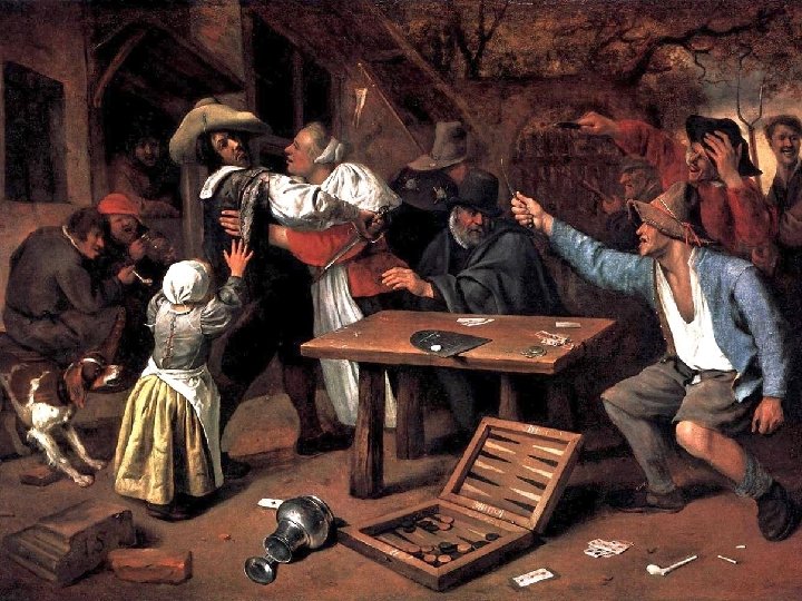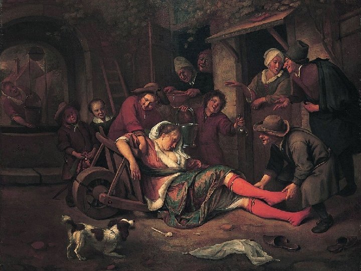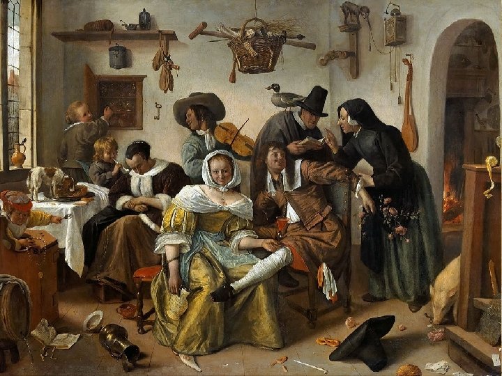 In 1671 werd hij gekozen tot hoofd van het kunstenaarsgilde. In 1672 opende Jan Steen taveerne de Vrede…. Een echte kastelein dus!!! Maar schilderen kon hij ook, kijk zelf maar…….