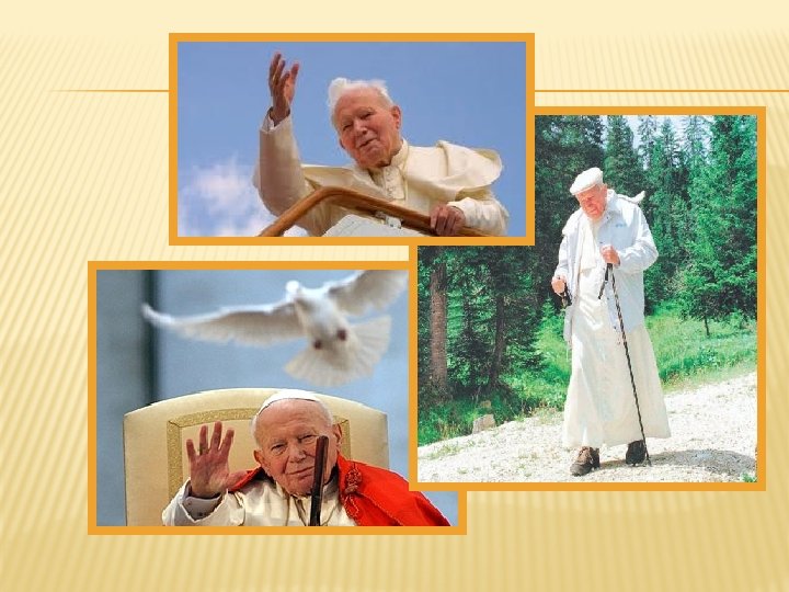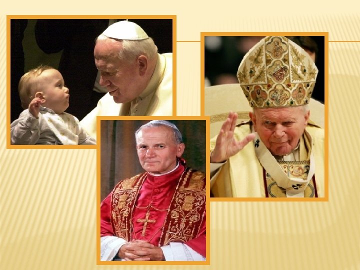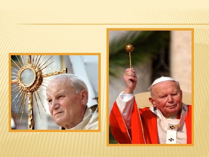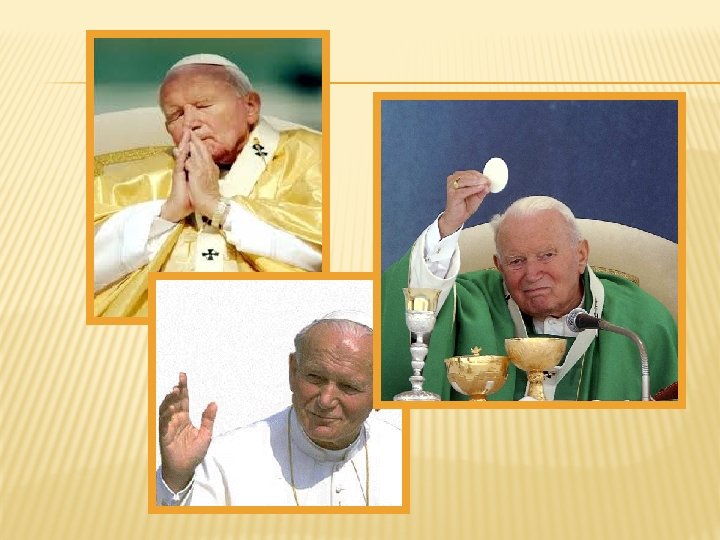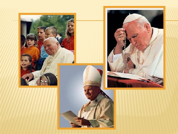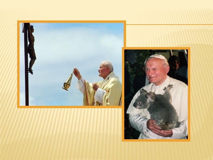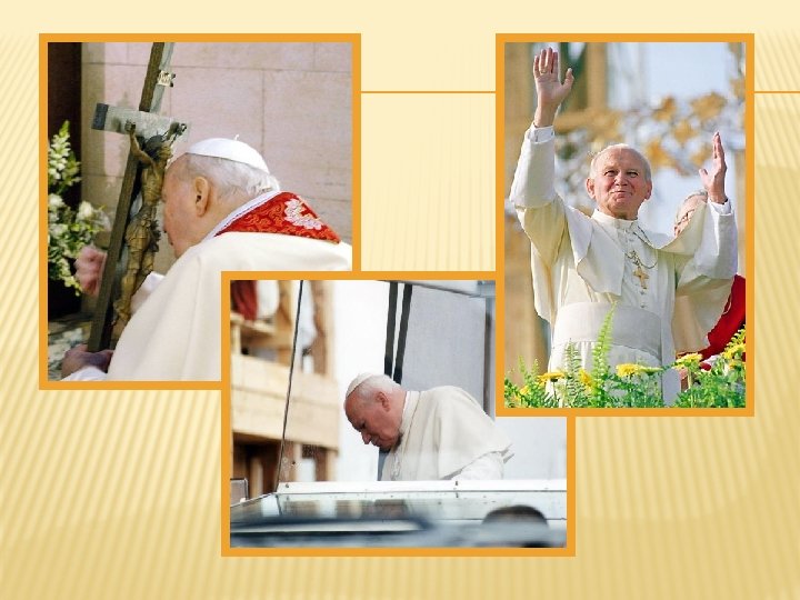 CIEKAWOSTKI Ø Ø Ø Od 14 marca 2004 roku pontyfikat Jana Pawła II jest uznawany za najdłuższy, po pontyfikacie Świętego Piotra i bł. Piusa IX. Był papieżem przez 26 i pół roku (9666 dni). Jan Paweł II beatyfikował i kanonizował o wiele więcej osób niż jakikolwiek poprzedni papież. Ogłosił błogosławionymi w sumie 1338 osób, kanonizował 482 świętych podczas 51 uroczystości. Podczas swego pontyfikatu Jan Paweł II powołał więcej kardynałów niż którykolwiek z jego poprzedników. Na dziewięciu konsystorzach papież kreował kardynałami 231 duchownych katolickich, m. in. kardynała Jorge Mario Bergoglio, przyszłego papieża Franciszka.
