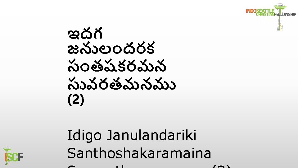 Janminchenu Oka Thaara Janminchenu Oka Thaara Thoorpu Dikkuna Slides: 23 Download presentation Janminchenu Oka Thaara ������ ����������� Janminchenu Oka Thaara Thoorpu Dikkuna Kaanthimayamugaa దవ న డ వడలన రరజ న స చసత భ వక Divi Nundi Bhuviki Vedalina Raaraajunu Soochisthu ������ ����������� Janminchenu Oka Thaara Thoorpu Dikkuna Kaanthimayamugaa దవ న డ వడలన రరజ న స చసత భ వక (2( Divi Nundi Bhuviki Vedalina Raaraajunu Soochisthu (2) హయపప కరసమస మరర కరసమస (2( Happy Christmas Merry Christmas (2) ������ ����������� Janminchenu Oka Thaara Thoorpu Dikkuna Kaanthimayamugaa దవ న డ వడలన రరజ న స చసత భ వక Divi Nundi Bhuviki Vedalina Raaraajunu Soochisthu దవద దవ డ ఒక శశ వ ప టటన (2) Devaadi Devundu Oka Shishuvai Puttenu (2) ������ ����������� Janminchenu Oka Thaara Thoorpu Dikkuna Kaanthimayamugaa దవ న డ వడలన రరజ న స చసత భ వక Divi Nundi Bhuviki Vedalina Raaraajunu Soochisthu సరవననత సథలమ లల దవ నక మహమ ఆయనకషట లక (2) Sarvonnatha Sthalamulalo Devuniki Mahima Aayanakishtulaku (2) భ మయ ద సమధనమ (2) Bhoomiyandu Samaadhaanamu (2) ������ ����������� Janminchenu Oka Thaara Thoorpu Dikkuna Kaanthimayamugaa దవ న డ వడలన రరజ న స చసత భ వక Divi Nundi Bhuviki Vedalina Raaraajunu Soochisthu మనలన పపలన డ రకష చ దవ డ ఆయన యస (2) Manalanu Paapaalanundi Rakshinchu Devudu న కరక అర ద చ తన పరణ నచచ టక (2) Nee Korake Arudenche Thana Praanam Nichchutakai (2) ������ ����������� Janminchenu Oka Thaara Thoorpu Dikkuna Kaanthimayamugaa దవ న డ వడలన రరజ న స చసత భ వక Divi Nundi Bhuviki Vedalina Raaraajunu Soochisthu ������ ����������� Janminchenu Oka Thaara Thoorpu Dikkuna Kaanthimayamugaa దవ న డ వడలన రరజ న స చసత భ వక Divi Nundi Bhuviki Vedalina Raaraajunu Soochisthu హయపప కరసమస మరర కరసమస (4( Happy Christmas Merry Christmas (4)