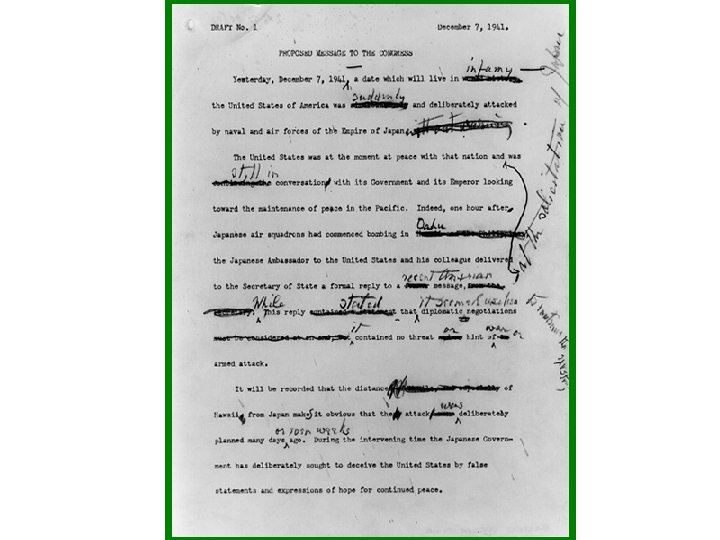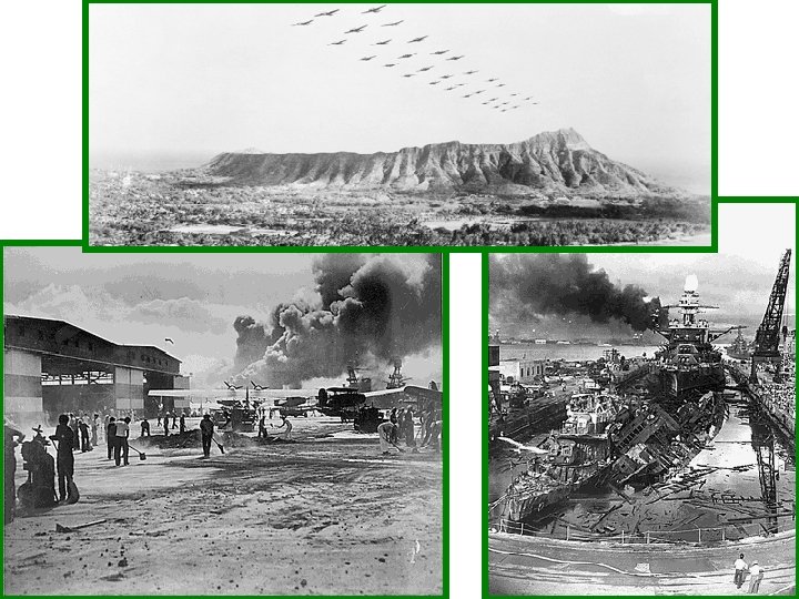 Global War • Japanese leaders had hoped their lightening strikes on American bases would destroy the U. S. fleet in the Pacific. • They also assumed the Roosevelt administration would accept Japanese domination of the Pacific. • Japanese leaders assumed the American people were soft, and that their easy, rich life had made them unable to fight. – The attack on Pearl Harbor unified Americans and most agreed that American needed to enter into WWII. – The U. S. joined with European nations and Nationalist China in a combined effort to defeat Japan. • Hitler declared war on the United States 4 days after Pearl Harbor.