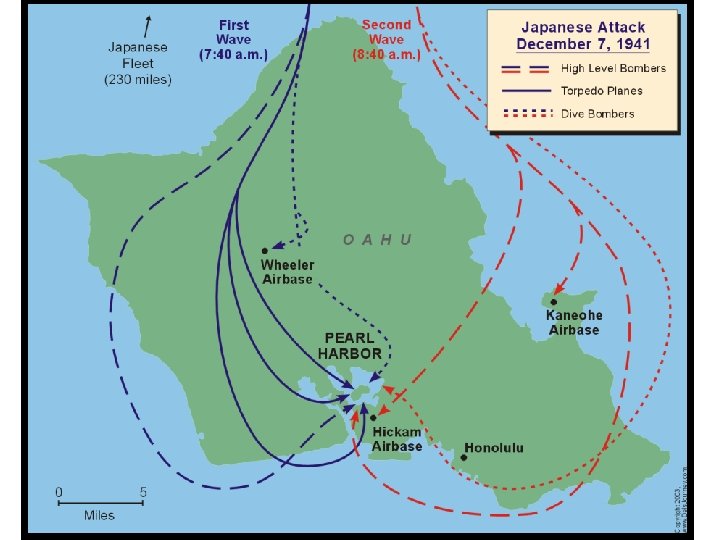 Japan at War • December 7, 1941, Japanese aircraft attacked the U. S. Naval Base at Pearl Harbor in the Hawaiian Islands. • The same day, other Japanese units launched additional assaults on the Philippines and began advancing toward the British colony of Malaya. • Next, the Japanese invaded the Dutch East Indies and occupied a number of islands in the Pacific Ocean. • Bataan Peninsula • By the spring of 1942, almost all of SE Asia and western Pacific area had fallen to the Japanese.