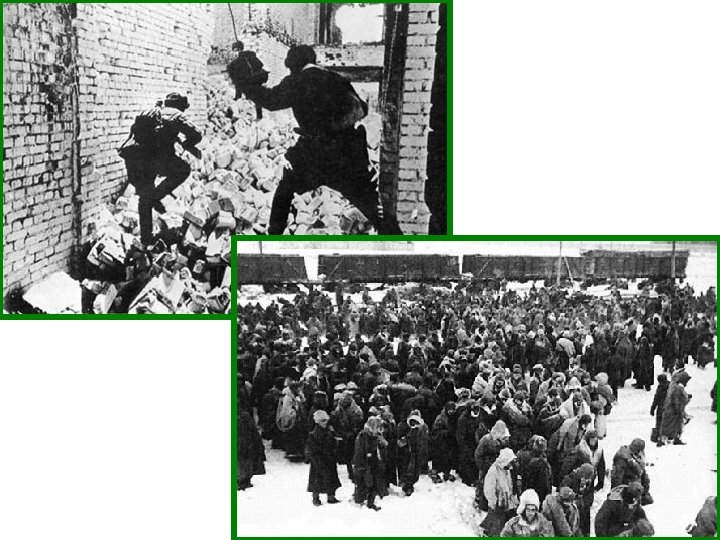The Tide Turns • Hitler’s next move was to take over Stalingrad, a major industrial center on the Volga River in the Soviet Union. – In perhaps the most terrible battle of the war, between November 1942 and February 2, 1943, the Soviets launched a counterattack. – German troops were stopped, then encircled, their supply lines were cut off, all in extremely harsh winter conditions. – The Germans were forced to surrender at Stalingrad. – The entire German Sixth Army, considered the best of the German troops, was lost. – By the Spring of 1943, even Hitler knew that Germans would not defeat the Soviet Union.