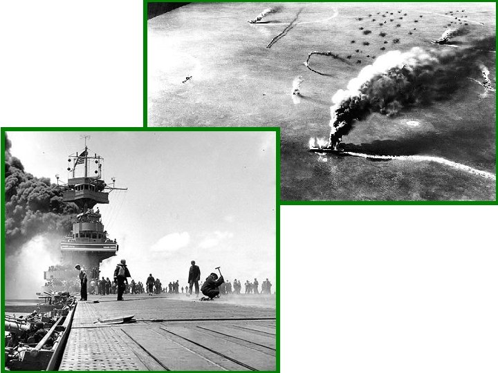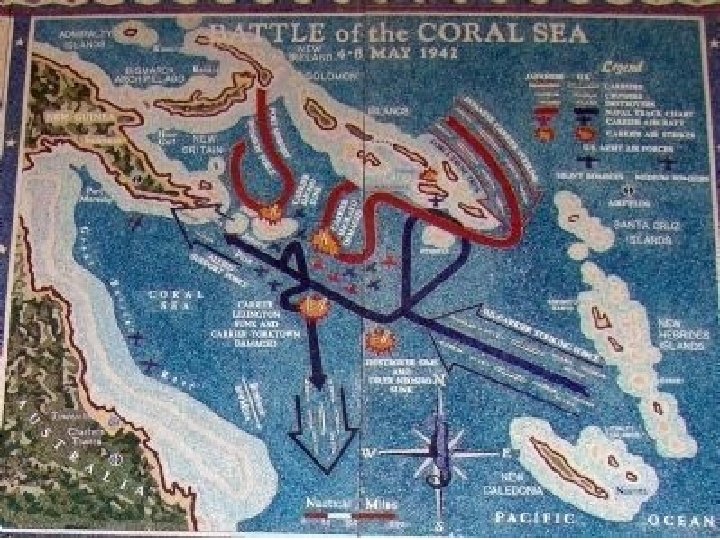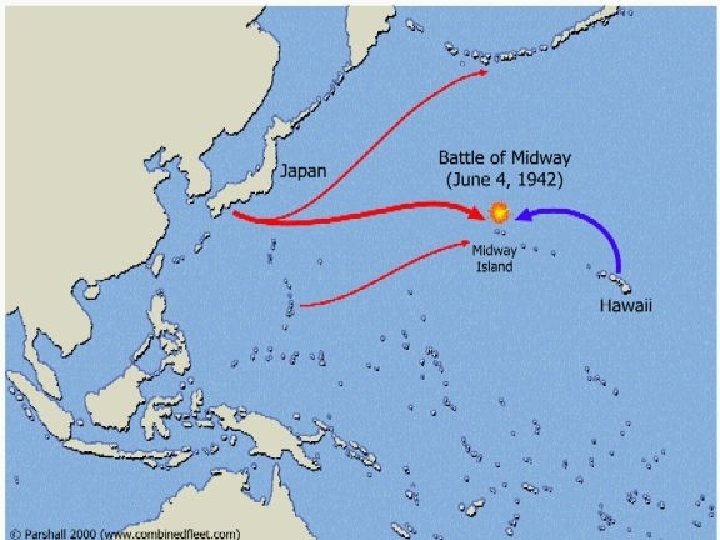 The Asian Theater • Battle of the Coral Sea- May 7 -8, 1942 – American Naval forces stopped the Japanese advance and saved Australia from being invaded. • The turning point of the war in Asia came on June 4 at the Battle of Midway Island. – U. S. planes destroyed four attacking Japanese aircraft carriers. – The U. S. defeated the Japanese Navy and established naval superiority in the Pacific.