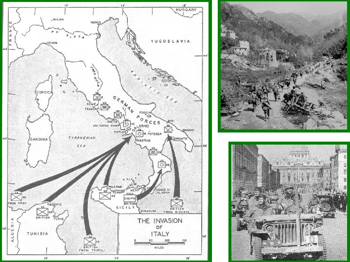 Last Years of the War • By the beginning of 1943, Axis powers had surrendered in Tunisia on May 13, 1943. • The Allies then crossed the Mediterranean Sea and carried the war to Italy. – This area had been called the “soft underbelly” of Europe by Winston Churchill. – After taking Sicily, Allied troops began an invasion of mainland Italy in September.