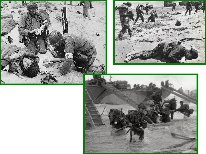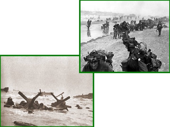 The European Theater • After Sicily fell, King Victor Emmanuel II of Italy arrested Mussolini, but the Germans eventually liberated him. – He was then made the head of a German puppet state in Northern Italy as German troops moved in and occupied much of Italy. – Germans had set up defense lines South of Rome. • • The Allies advanced up the Peninsula with heavy causalities, but they took Rome on June 4, 1943. By then, the Italian war was secondary as the Allied forces opened their long-awaited “second front” in western Europe. – Since the fall of 1943, the Allies had planned an invasion of France from Great Britain, across the English Channel. – Finally, on June 6, 1944 (D-Day), Allied forces under U. S. General Dwight D. Eisenhower landed on the Normandy Beaches in history’s greatest naval invasion.