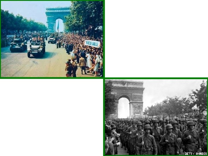 The European Theater • The Allies fought their way past hidden underwater mines, treacherous barbed wire, and horrible machine gun fire. • Believing the battle was a diversion and the real invasion would occur elsewhere, the Germans responded slowly. • This gave the Allied forces time to set up a beachhead. • Within 3 months, the Allies had landed 2 million men and 500, 000 vehicles. • Allied forces then began pushing inland broke through German defensive lines.