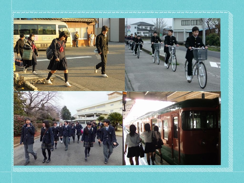 Secondary students usually go to school by bicycle or on foot. High school students usually go to school by train or bicycle