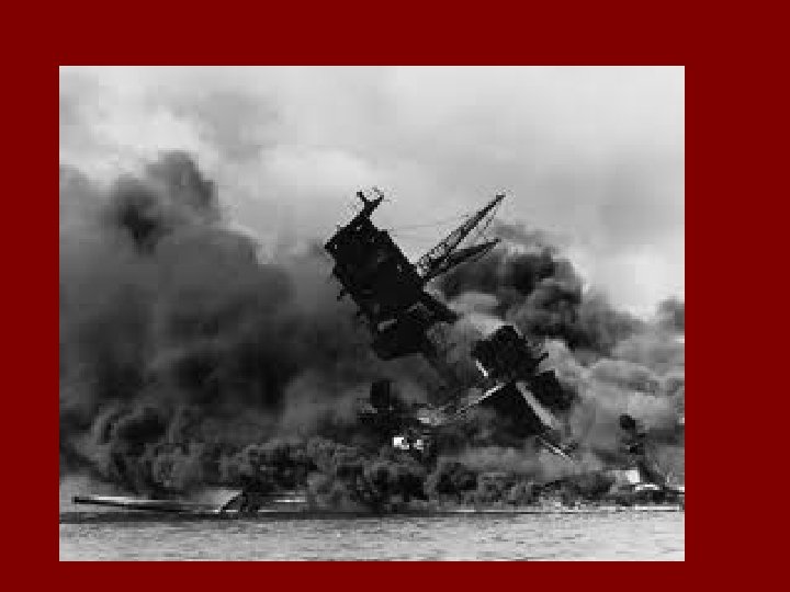 Pearl Harbor continued • Aftermath of attack: -19 American ships sunk -2, 300 Americans killed -1, 100 wounded • American public had been divided about entering the war. Now, shocked and ready to fight! • Congress quickly declares war on Japan and its allies (Germany and Italy)