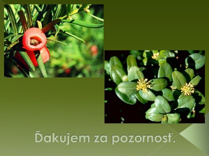 Teraz si zopakujme, ako vyzerajú kvety a plody tisa a krušpána. Spoznáte ich?