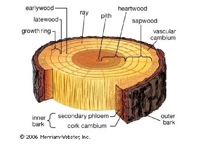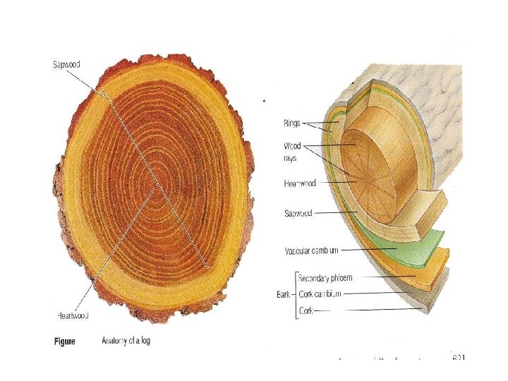 LINGKARAN TAHUN xylem sekunder (kayu) biasanya terdiri dari lapisan-lapisan konsentris yang masing-masing menggambarkan pertumbuhan dalam 1 musim. di daerah iklim sedang dan tropika terdapat pergantian tiap tahunnya antara musim tumbuh dan dorman. masing-masing lapisan menggambarkan tumbuhnya dalam 1 tahun. Pada musim hujan sel besar, tetapi musim kemarau sel kecil