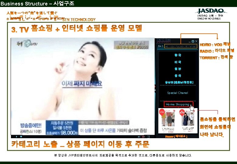 JASDAQ 上場 : 7954 EMCOM HOLDINGS 한국 미국 일본 중국 동남아 ---------------- Special Channel ---------------- Home Shopping